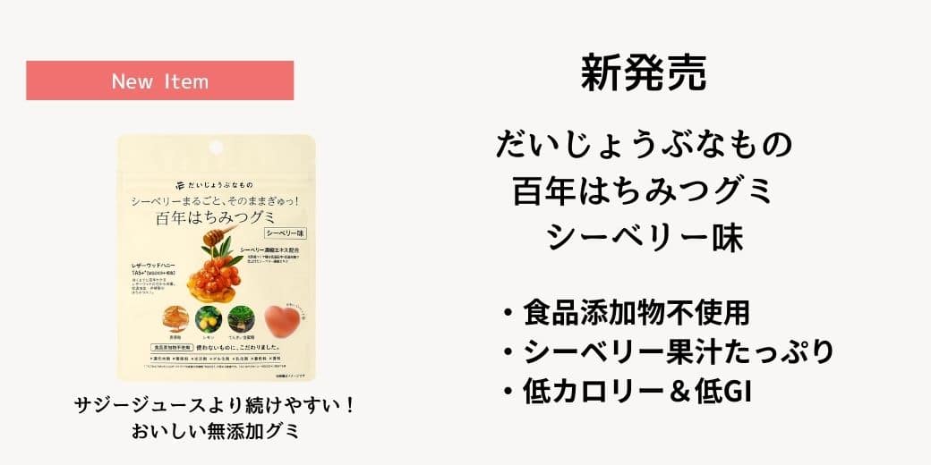 大好評の百年はちみつグミに、シーベリー味が新登場!